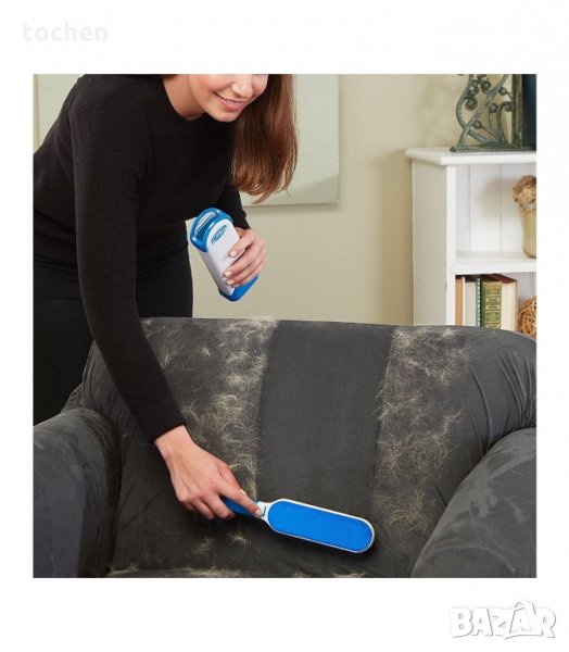 А начинът да се справиш с всички косми и власинки е повече от лесен! Ето как:Четката Hurricane Fur Wizard има две лица. Приплъзваш с лекота върху желаната повърхност, а после обръщаш. Ето така спестяваш време, благодарение на по-голямата двулицева площ. А когато всички косми