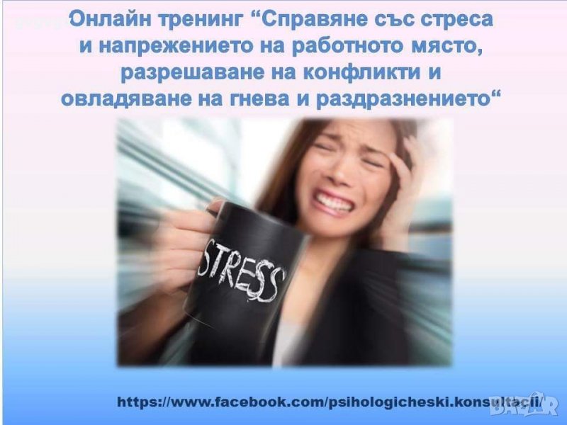 * Онлайн тренинг "Справяне със стреса и напрежението на работното място, разрешаване на конфликти и овладяване на гнева и раздразнението"