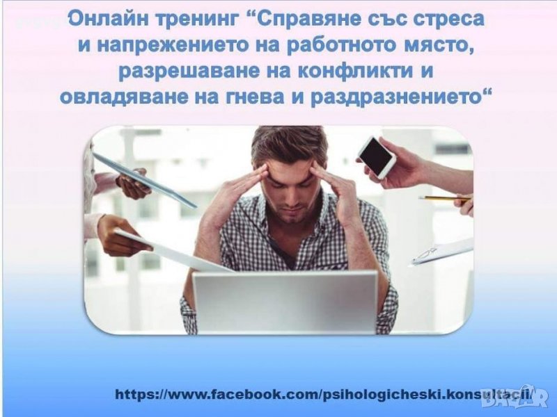 ОНЛАЙН ТРЕНИНГ „Справяне със стреса и напрежението на работното място, разрешаване на конфликти и овладяване на гнева и раздразнението”