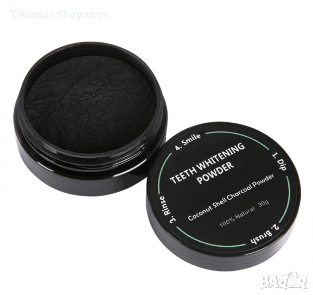 влажна четка за зъби в пудрата. Имате нужда от малко количество пудра по