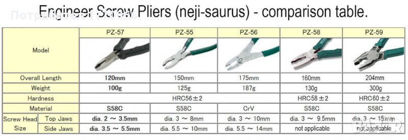 неджи-саур клещи за отвеждане на винтове от обикновени обикновени клещи).