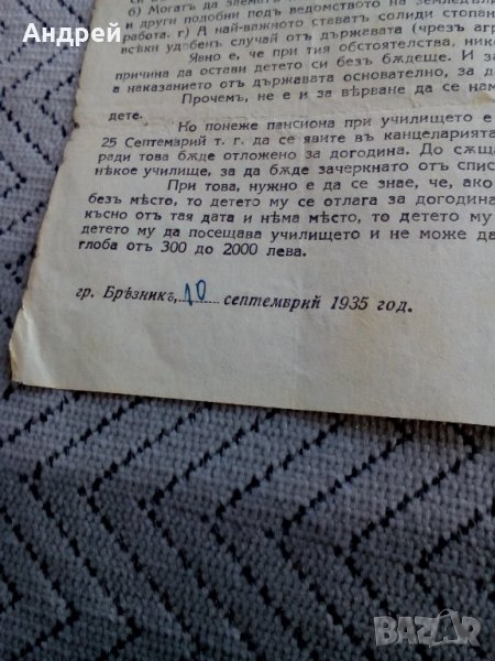 Старинно писмо Допълнително Земеделско училище гр.Брезник 1935г.