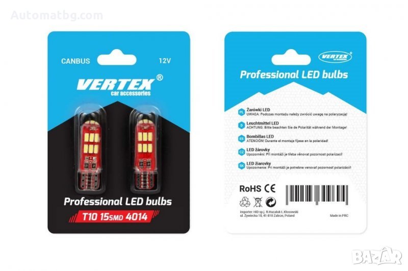 Крушка светодиодна LED VERTEX CANBUS 15SMD 4014 T10e (W5W) SILCA бял 12V