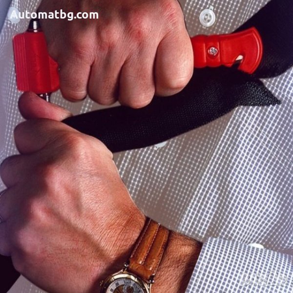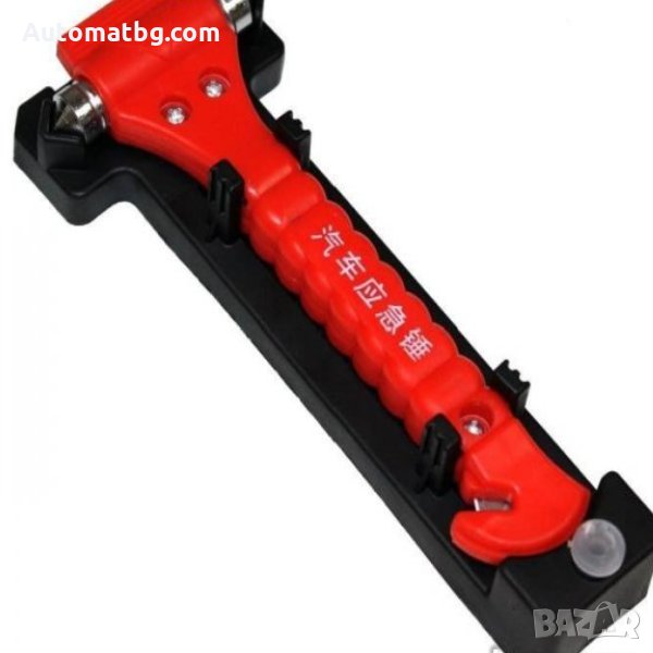 Разполага с: пъпка за чупене на стъкло, острие за рязане на колани, чук.