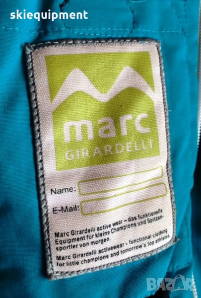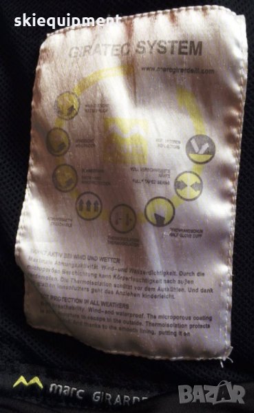 Ски екипа е дизайнерско изпълнение на марката MARK GIRARDELLI. Всички ципове са гумирани. Якето е размер 164, а долнището е 152. Всички екстри и състоянието са видни на публикуваните снимки.