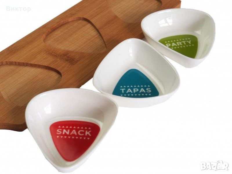Комплект за разядки/ предястия/ снаксове/ тапас. Бамбуково дърво и порцелан.
