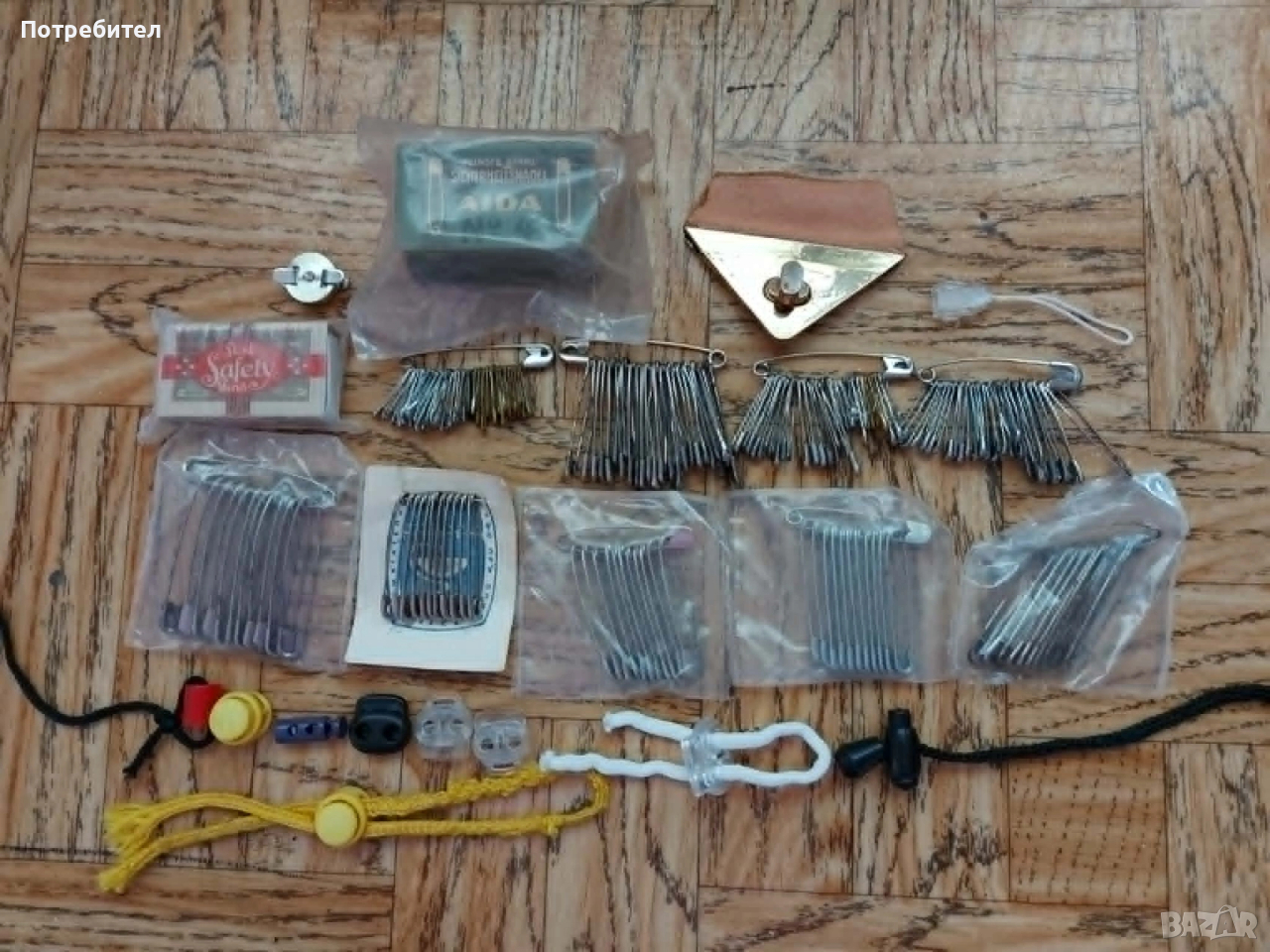 Нови къси и дълги дръжки, аксесоари за чанти, обувки, връзки за обувки, безопасни игли, шивашки материали и друга стока за дома.