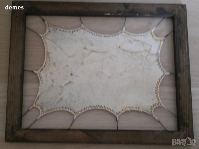 Кожата е чудесно обработена и опъната върху дървена рамка.