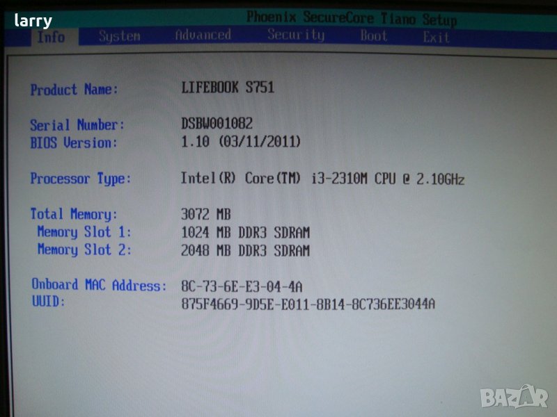 Fujitsu Lifebook S751 лаптоп на части → Обява 23977761