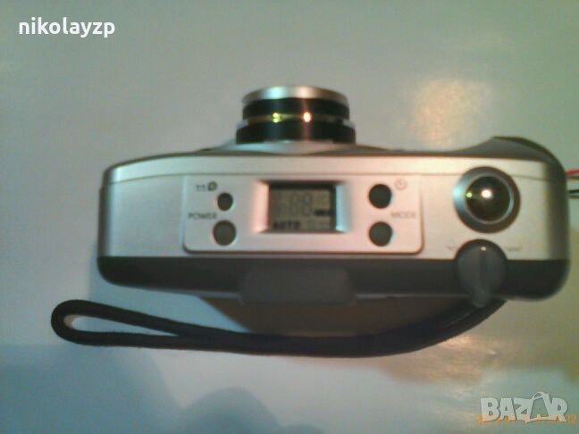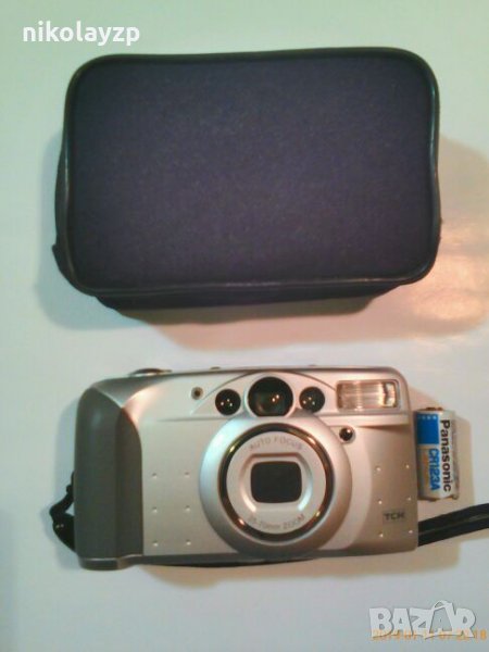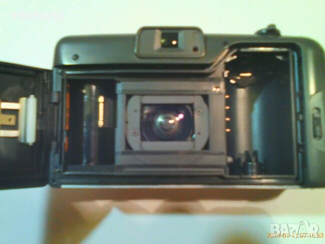 Фотоапарата е в перфектно състояние . Използван е много малко . Работи със стандартни 35 мм филми . Има автоматична експозиция , функция за приближаване и отдалечаване на обектите " ZOOM " , функция " Червени очи " , обратен таймер , светкавица , автоматично позициониране на кадъра и автоматично превъртане на филма , когато свърши . Работи с една литиева батерия 3V модел CR123A . Преди години , когато го купих тези батерии се намираха много трудно и бяха скъпи , затова се принудих върху изтощена батерия да закача външна акумулаторна и така го използвах . Батерията която съм снимал всъщност служи само за достъп до гнездото , без да се разглобява апарата , така и го активирах , за да мога да снимам обектива и дисплея в работно състояние . Ако се сложи нова батерия , ще си работи и с нея , без външен източник . Има си и калъфче . Много хубав фотоапарат , но вече няма практическо приложение .