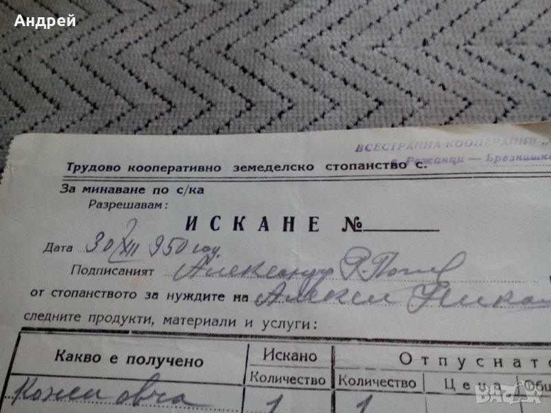 Старо искане 1950, снимка 1 - Антикварни и старинни предмети - 23978708 Старо искане 1950, снимка 2 - Антикварни и старинни предмети - 23978708 Старо искане 1950, снимка 3 - Антикварни и старинни предмети - 23978708 1/3