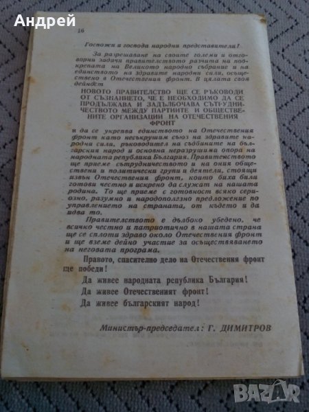 Четиво Декларация на правителството на ОФ,Г.Димитров → Обява 23983276