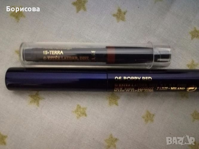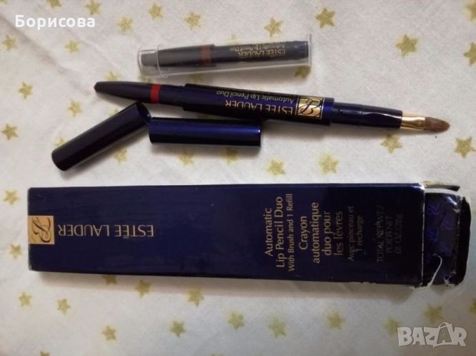 Молив за уста Estee Lauder automatic lip pencil duo poppy red червен цвят + пълнител кафяв цвят + четка за нанасяне - 22.00 лв.