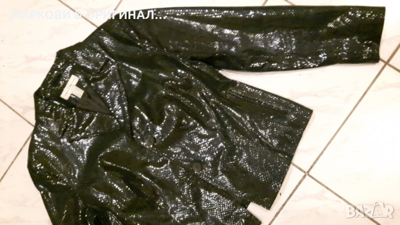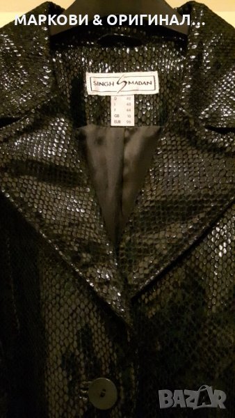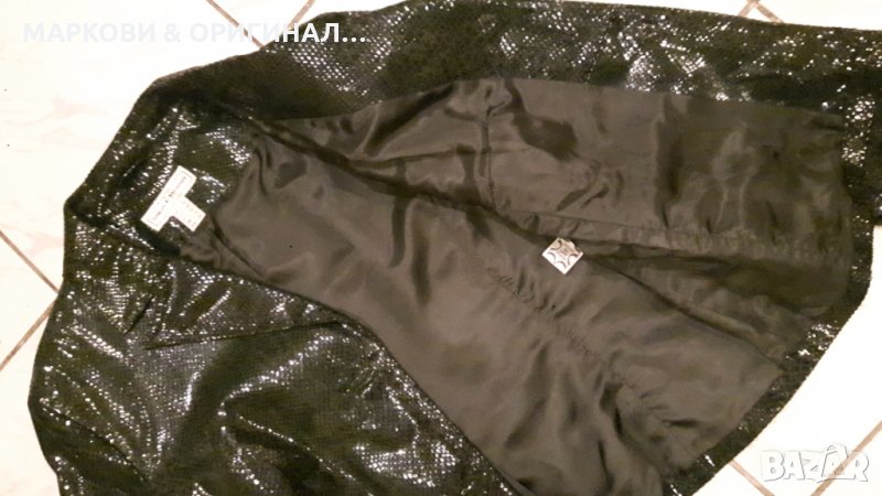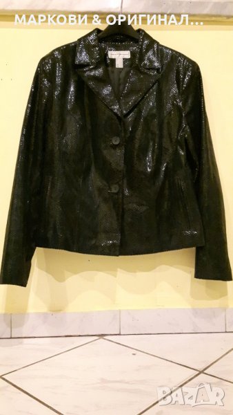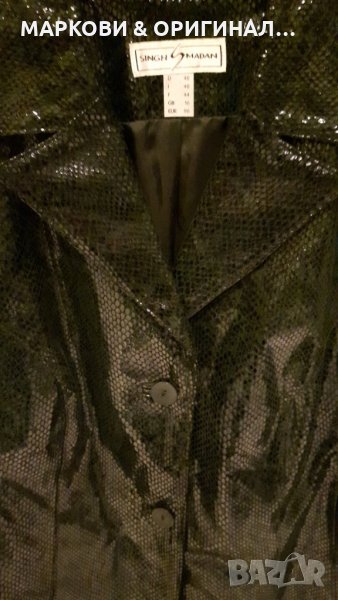 Ново! Марково яке от ест.кожа,тъмно зелено на цвят..вталено,елегантно и с леко лъскав ефект,змийски принт,без етикет..р-р.42/Л..Ефектен модел!