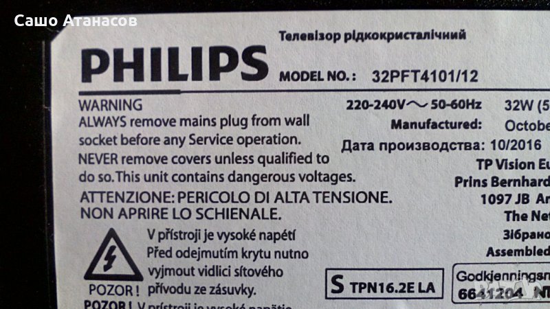 PHILIPS 32PFT4101/12 със счупена матрица ,715G7734-P01-000-002H ,715G6947-M02-000-004Y ,HV320FHB-N00