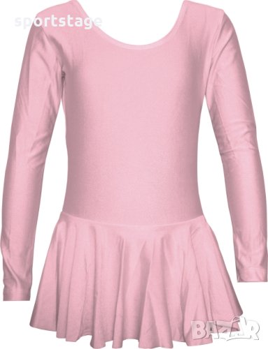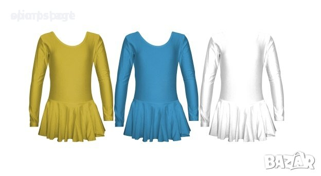 Детско трико с дълъг ръкав и пришита поличка. Подходящо за гимнастика, танци и балет. Материал: 70% полиестер, 30% ликра. Цвят: различни цветове.