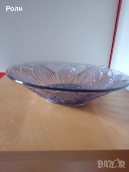 Стъклена фруктиера светлолилава диаметър 27см, вис.6 см-сн.1,2