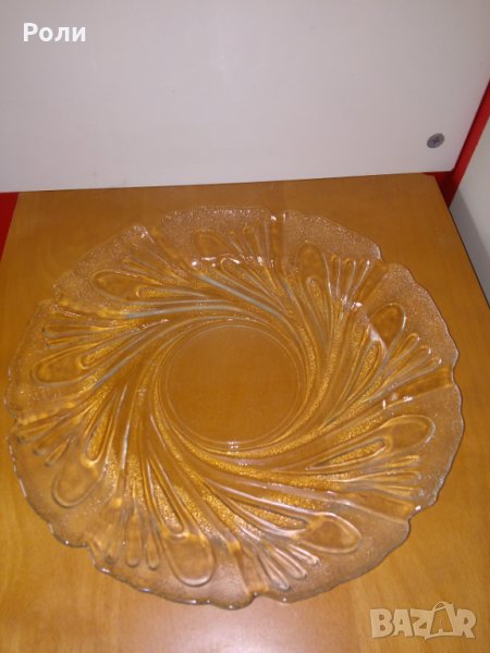 Чинии релефно стъкло диаметър 30-31 см вис.3 см. кафява, безцветна