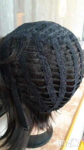 Продава се в комплект с шапка за прибиране на косата. Може да се мие в хладка вода с шампоан и да се реше с четка за изкуствена коса.