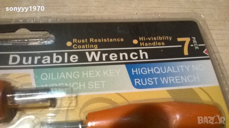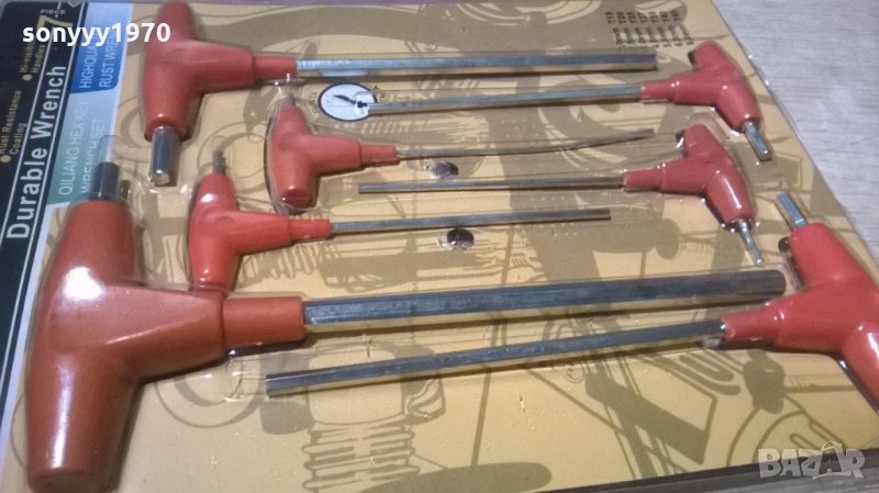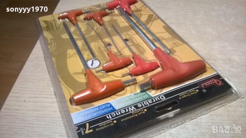 нов Комплект ключове шестограм в Г-образна форма - 7бр. Размери: 2 - 8мм. Предлагат се в PVC опаковка-пращаме със спиди или еконт с преглед и тест след превод на капаро за куриерската услуга поради зачестили некоректни потребители-поръчки само тук в саита! по телефона и със смс не! краини цени! бартери не правиме! ПАРИ НЕ ВРЪЩАМЕ! всеки ден нови неща-още 2-3 наши обяви тук