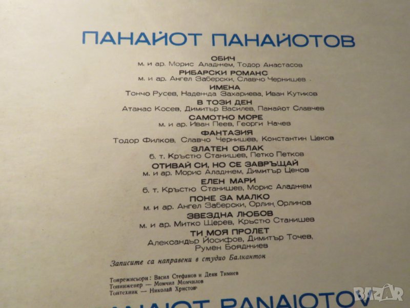 Грамофонна плоча - Панайот Панайотов - Обич - издание 70те години !