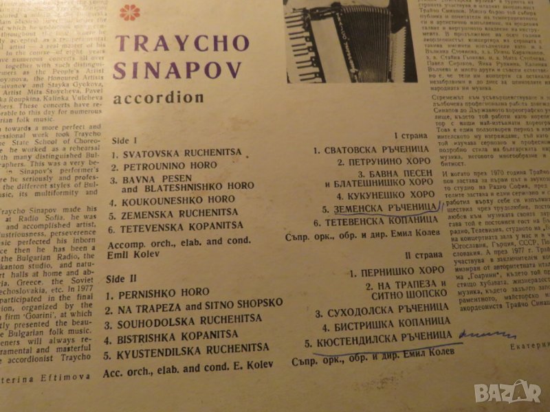 Грамофонна плоча - Трайчо Синапов - Акордеон - изд.70те години. → Обява 24035542
