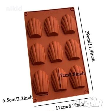 9 бр големи Мадлени сладки бисквитки Мадлен силиконов молд форма декорация торта фондан шоколад → Обява 24048354