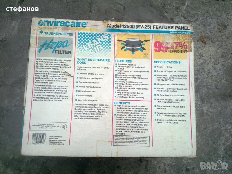 Прочистване на въздух за в къщи 99.97% → Обява 24051164