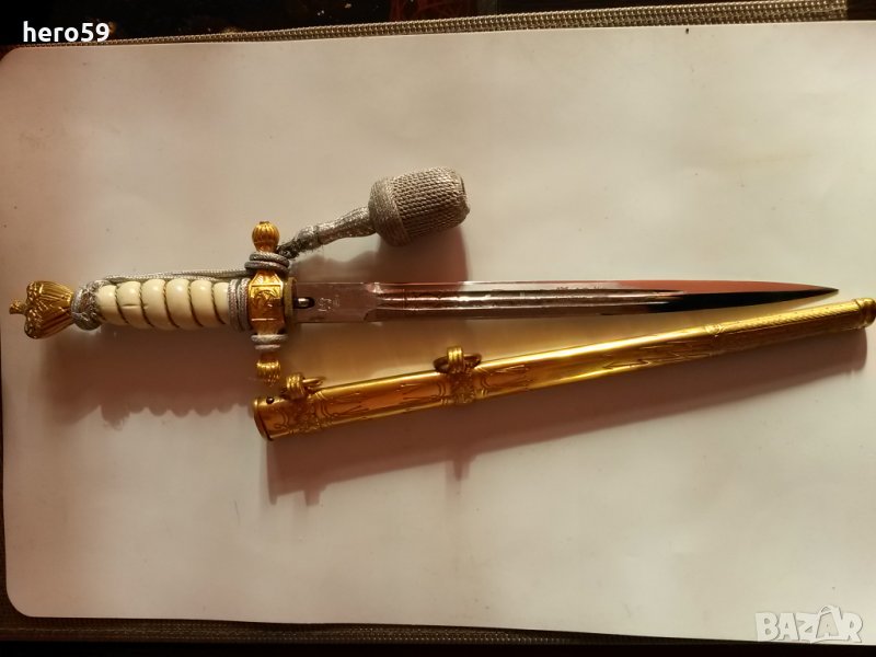 Първо за цената...много ще се запитат(този нормален ли е да иска такива пари)Отговорът ми към тях е този(качеството струва пари).А сега, продавам морски немски кортик от втората световна война,в отлично състояние.Все едно вчера е излязъл от фабриката,мечта за много колекционери.На живо е още по забележителен!Имам такъв,който е в пъти по евтин от този,така че има за всички!