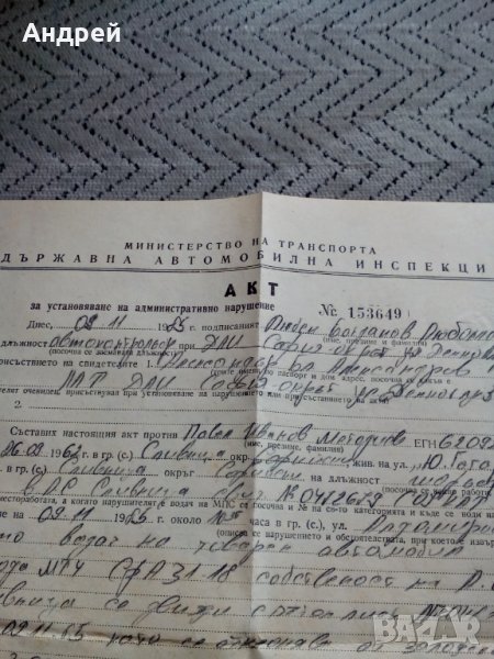 Стар Акт за нарушение ДАИ → Обява 24066692