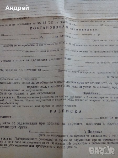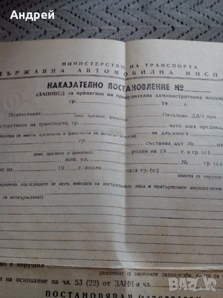 Старо Наказателно постановление ДАИ,бланка → Обява 24066742