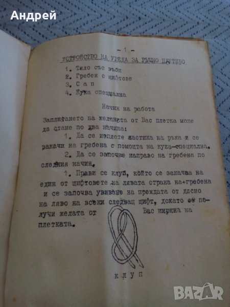 Упътване за Работа на Уред за Ръчно Плетиво, снимка 1 - Други ценни предмети - 24077316 Упътване за Работа на Уред за Ръчно Плетиво, снимка 2 - Други ценни предмети - 24077316 Упътване за Работа на Уред за Ръчно Плетиво, снимка 3 - Други ценни предмети - 24077316 Упътване за Работа на Уред за Ръчно Плетиво, снимка 4 - Други ценни предмети - 24077316 Упътване за Работа на Уред за Ръчно Плетиво, снимка 5 - Други ценни предмети - 24077316 1/5