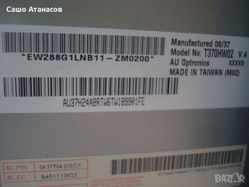 SAMSUNG LE37A550P1R с повредена матрица ,BN44-00157A ,BN41-01019A ,T370HW02 V402 ,VIT71037.50 REV:1