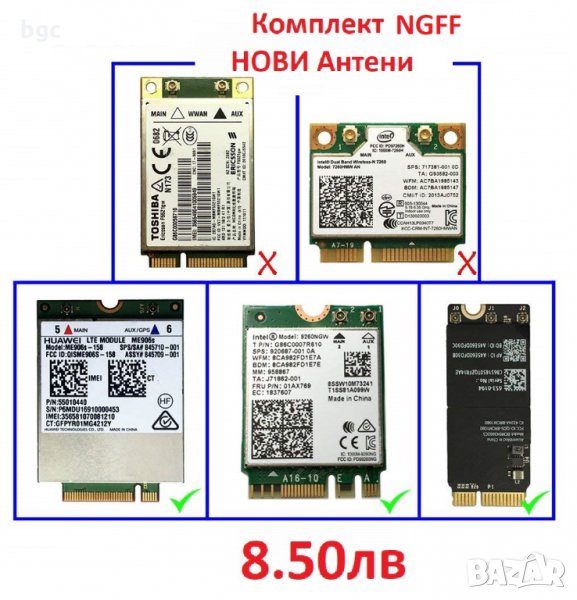 Intel 7260 7265 3160 8260 17265 18265 9260 9560 NGFF / M.2 NGFF Карта съвместима е
