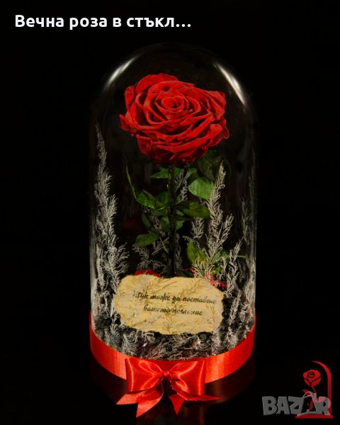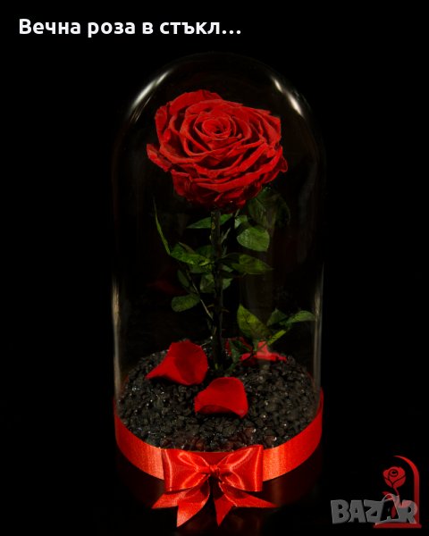 Романтичен подарък за приятелка / ЕСТЕСТВЕНА вечна роза в стъкленица / Подарък за Рожден Ден на Жена