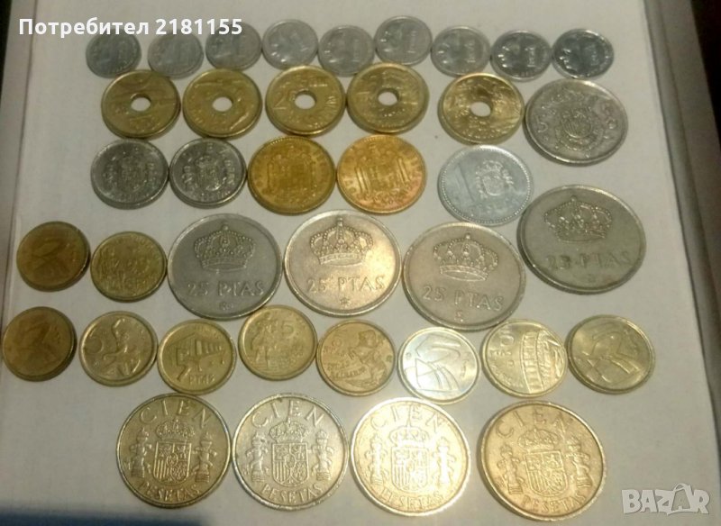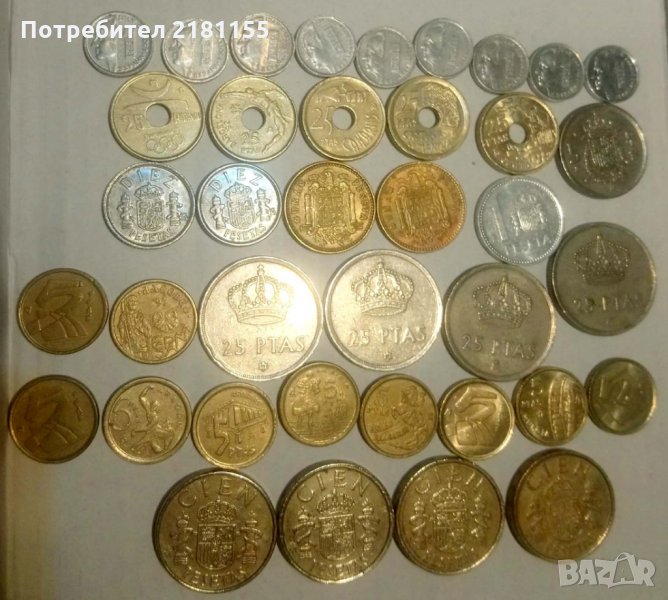 Колекция от 38 монети/ испански песети от времето на Крал Хуан Карлос. За повече информация и контакт на лично съобщение или имейл [email protected]