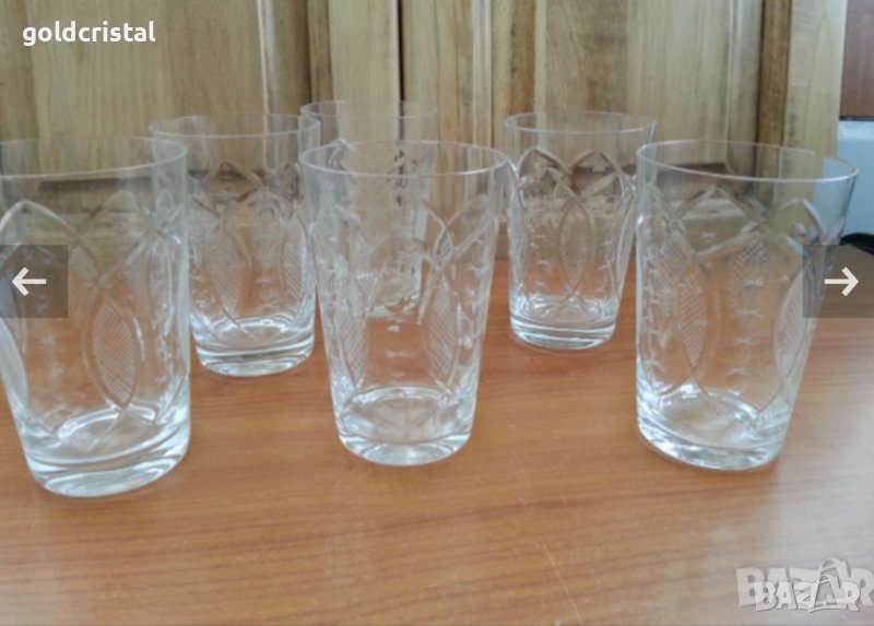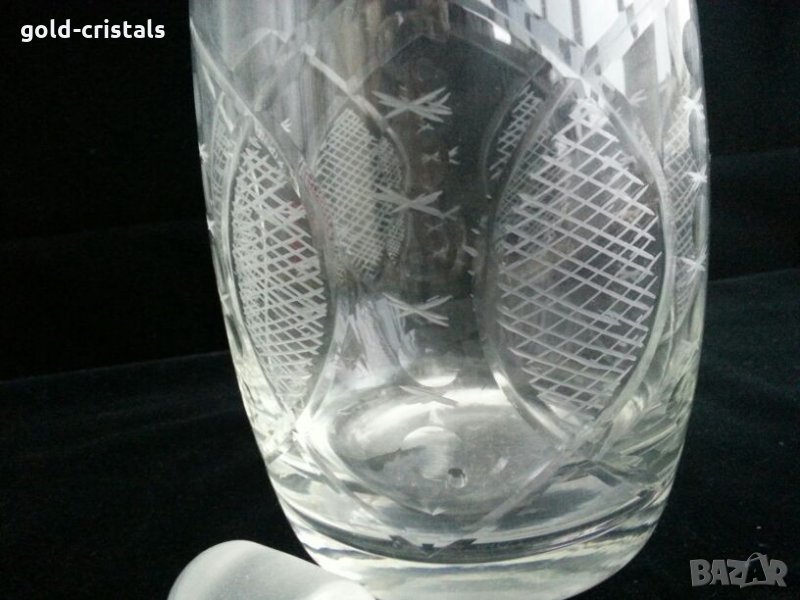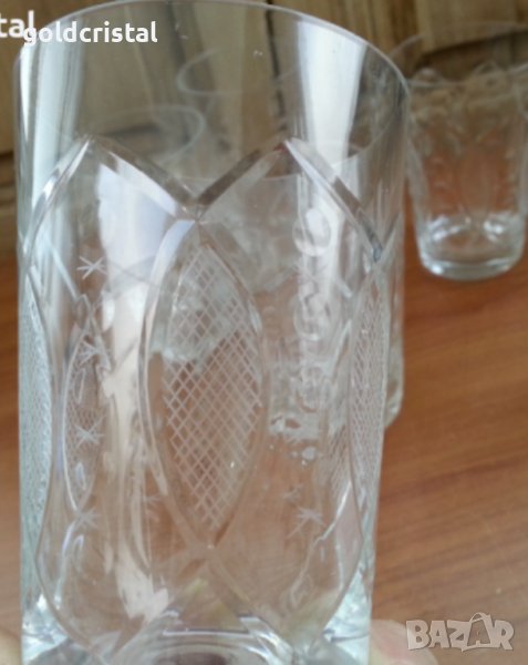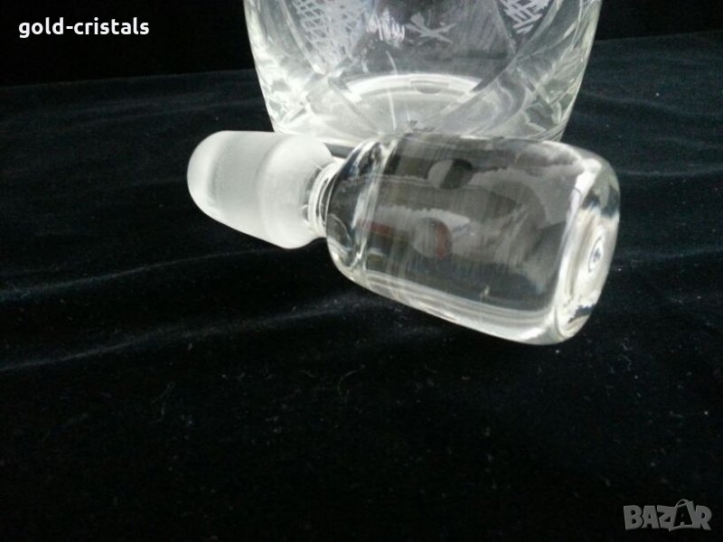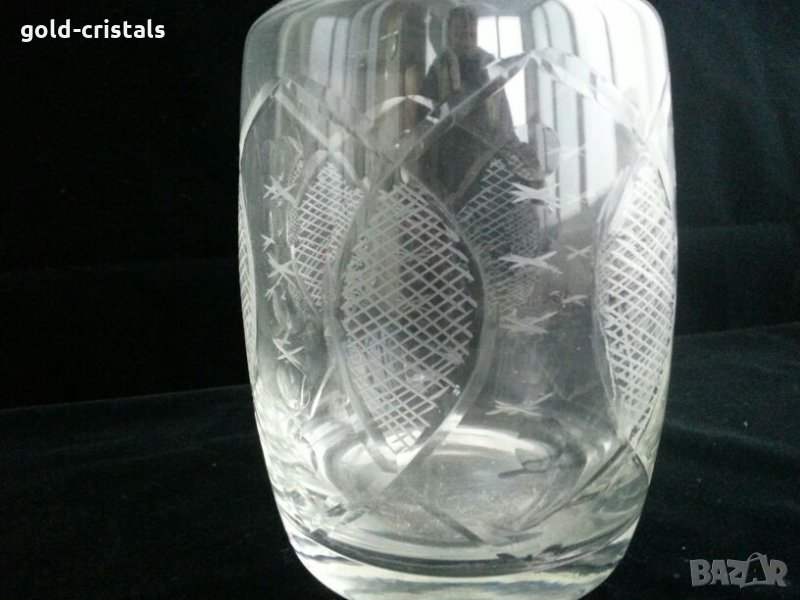 Ретро гравирани чаши за вода безалкохолно 6 бр -60€ и гарафа -30€ има и чаши на столче за вино 6бр-60€ лв бутилка шише голяма ръчно гравирани кристално стъкло стъклена тапа кристално стъкло ръчна изработка стара старинна ретро арт декор винтидж колекция стара антикварни предмети обзавеждане за дома и семейството подходящи за подарък за ценители и колекционери