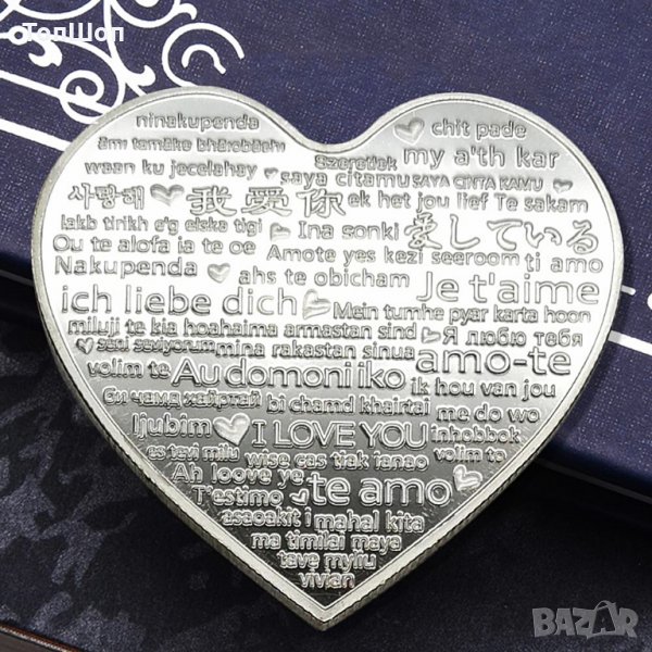 Монета за влюбени специален подарък за Свети Валентин ! Допринеси романтика за специален човек + Обичам те на 100 езика !