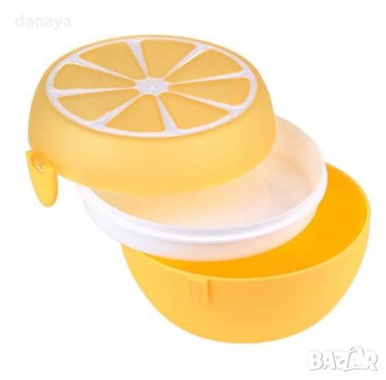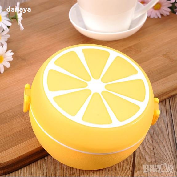 Детска кутия за храна с форма на портокал или лимон. Симпатична кутия за обяд с две отделения и прибори лъжичка и виличка. Вместимост на кутията окло 1.2л. Подходяща за училище, работата или на път. Свеж и нестандартен дизайн.