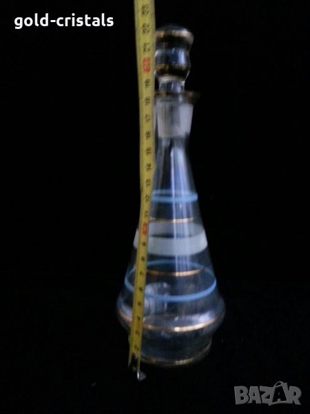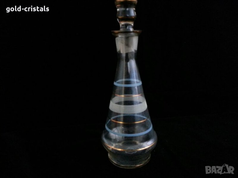 Ретро стъклена гарафа бутилка шише с златен кант позлата стъклена тапа кристално стъкло стара старинна арт декор винтидж колекция стари антикварни предмети обзавеждане за дома и семейството