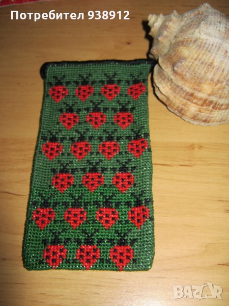 Ръчно бродирано калъф върху панама и с конци Ариадна. Подходящ е за смартфон. Затваря се с тик-так копче.