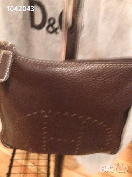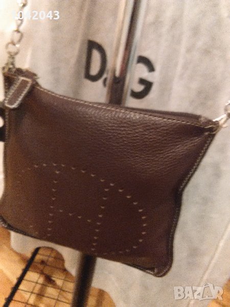 Малка дамска чанта от дебела, тъмно кафява естествена кожа. Дръжката е през рамо, позволява да се носи и с много финни дрехи, защото не закача. Имала съм друга ( скъпа чанта), която ми съсипа две рокли, като им издърпваше нишки, ужасно е!