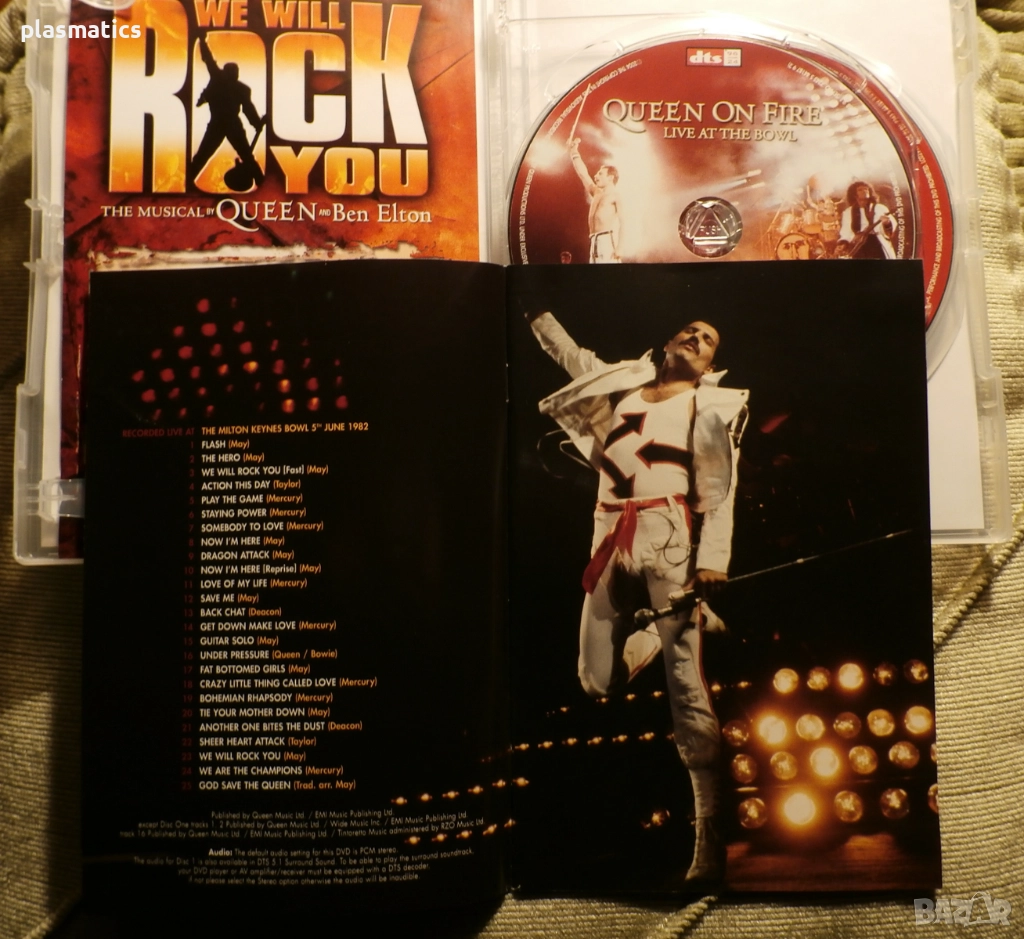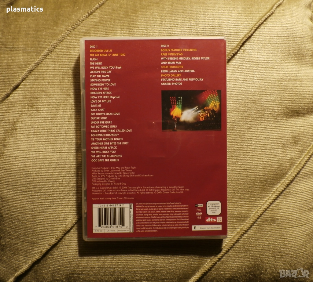QUEEN ON FIRE - Live at the Bowl 2004-2DVDs - оригинално DVD, купено от Англия, издание на EMI UK. Концертът е записан по време на турнето им през 1982г. с легендарния Фреди Меркюри. И двата диска са като нови. Времетраене 2ч. и 50мин.-28лв.