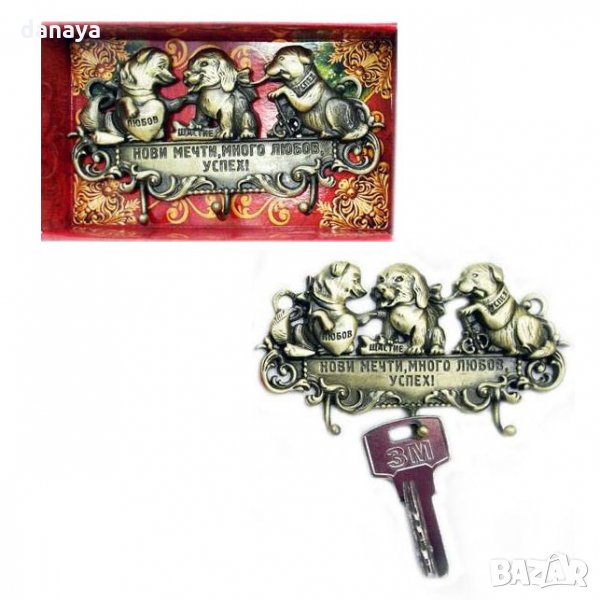 закачалка за ключове с три кукички за закачане. Декоративна поставка за ключове с надпис "Нови мечти, много любов, успех!". Закачалката е чудесен подарък или добавка към подарък за дом, подарък за нова година, подарък за Коледа, подарък за приятел, подарък с положително послание! В подаръчна опаковка.