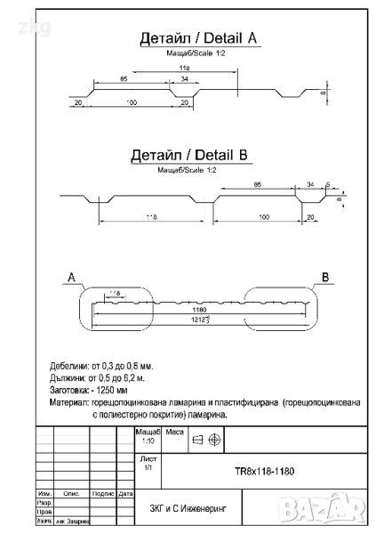 грунд с дебелина 7 +/- 2 микрона. Ламарината се произвежда съгласно следните