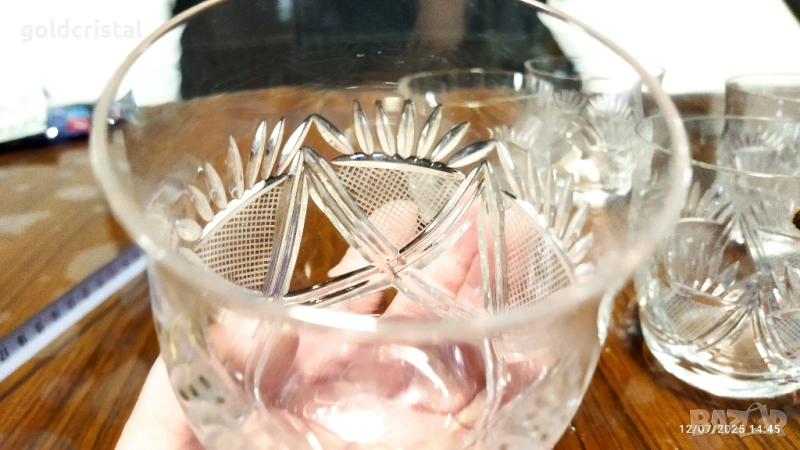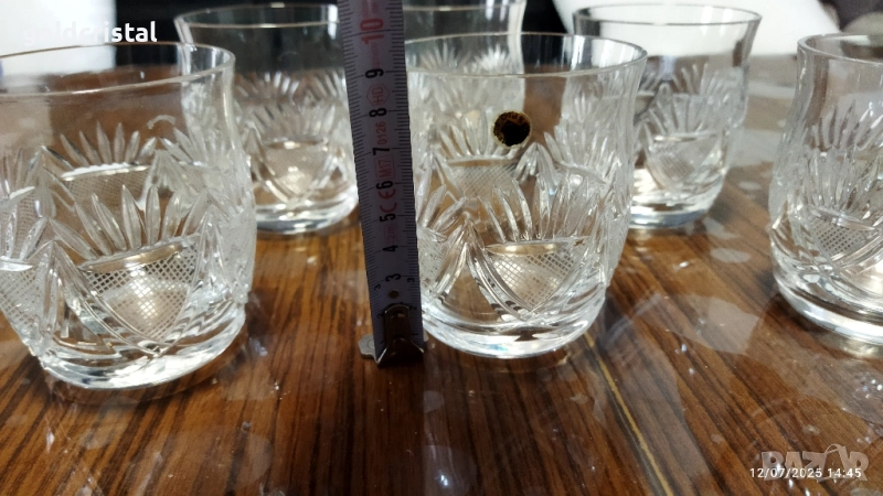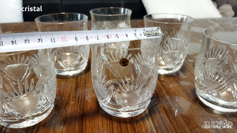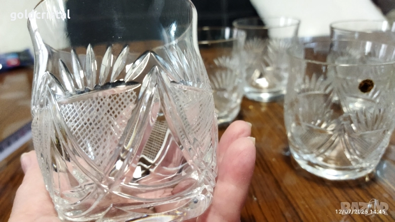 кристални чаши нови с етикет стар български кристал ръчно гравирани за уиски 6 бр -120 за коняк 6 бр-120лв сервиз комплект сет лот кристално стъкло ретро арт декор винтидж колекция стари антикварни предмети обзавеждане за дома и семейството подходящи за подарък за ценители и колекционери