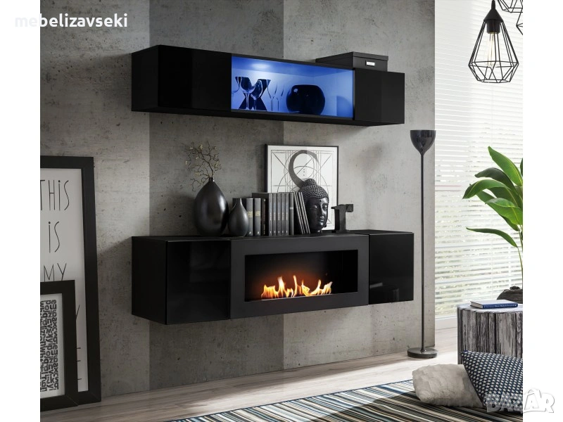 Нова! Модулна секция с камина FLY N3 (черен гланц/черно) → Обява 24200555