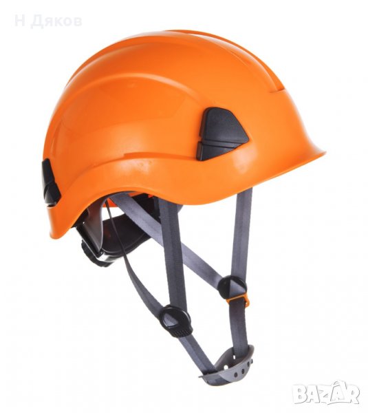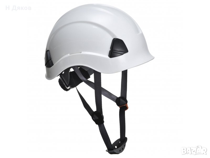 Работна каска PS53 за Височинна работа- Високо каèствен продукт на ирландската фирма Портуест. Каската е проектирана за да се използва специално за работа на височина. Олекотена, удобна и без козирка за по-добра видимост и по-малка тежест. ABS корпус, текстилен комфортен ремък със 6 точки на захващане, регулиране на околожката с винт, размер 56-63см. Подбрадник с 4 точки на закрепване. Протектор от мек материал за брадичката.