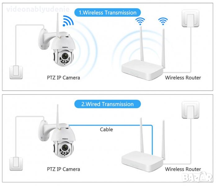 Водонепромокаема FULL HD 1080P PTZ 0~330° Моторизирана Камера Wi-Fi 3.6мм Леща Микрофон mSD Слот