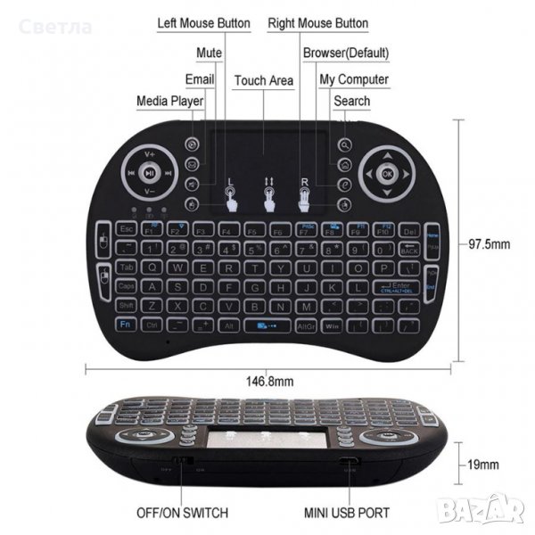 +Безжична мини клавиатура i8 СВЕТЕЩА с Li-Ion Батерия. Цена 9.19 €